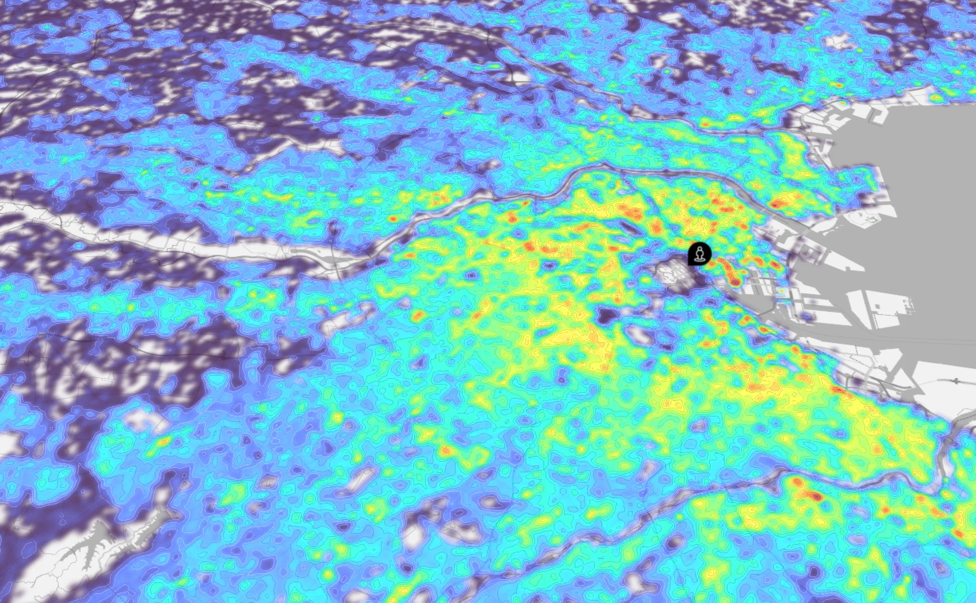 In this blog post, we'll explore how to visualize beautiful heatmaps faster on Cesium. To do it, we can customize Cesium's Ground Primitives, which allow unique appearances. So, we'll dive into the process of defining your own materials and shaders, allowing you to produce striking visual results like the one shown below.